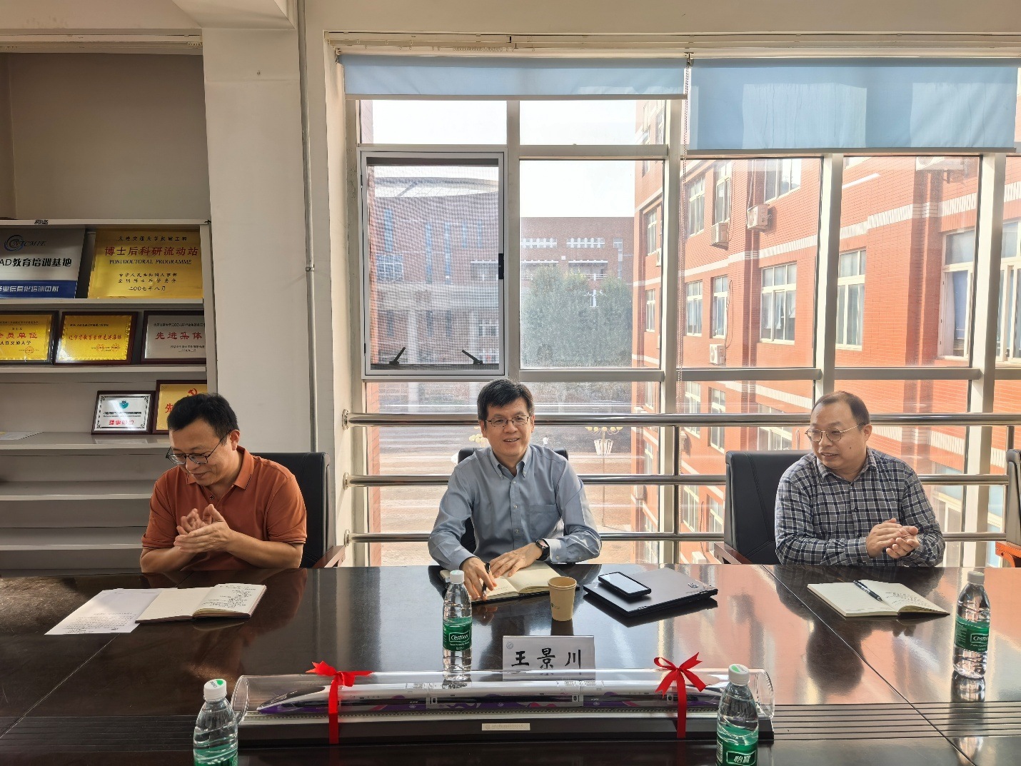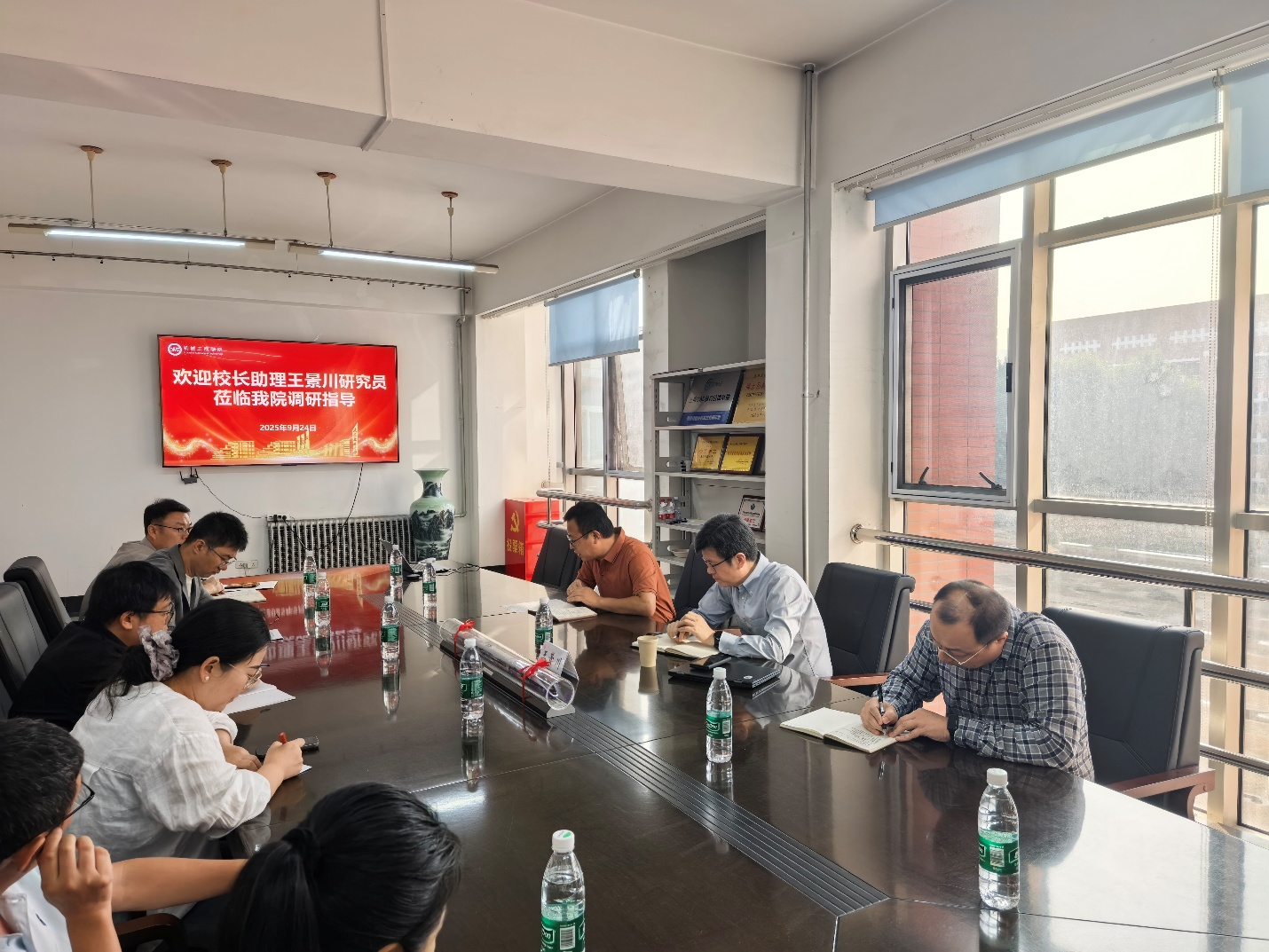 与机器人工程专业学生项目制培养规划深入研讨并学习上海交通大学学生创新中心经验;王景川还与年轻教师细致交流科学研究方向、实践教学内容与方法并就科学研究选题、实验设备配置、实验环节优化提出建设性意见,并结合自身经验,对机器人工程、机械电子工程专业培养方案提出针对性建议。